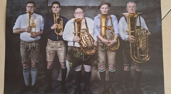 Die Schlenkerer, eine fünfköpfige Bläsergruppe, tritt mit ihrem Programm "LUJA" auf. Zu hören sind schmissige Blasmusik, swingender Jazz und traditionelle Rhythmen. Luja ist Lebensfreude pur: "Luja sog i, SacklZement Halleluja!"